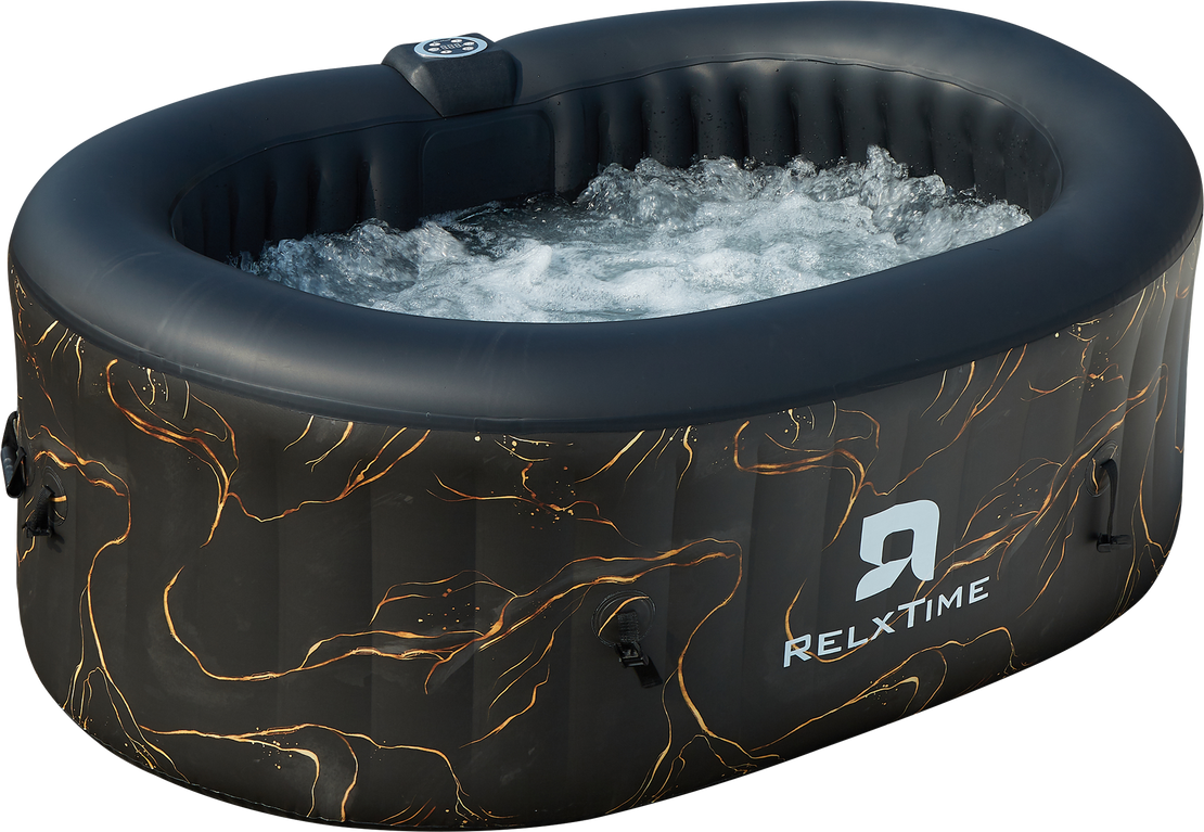 Spa gonflable Relxtime pour 2 personnes, spa gonflable ovale portable, éclairage LED, spa extérieur avec 100 jets à bulles, pompe de chauffage intégrée et 2 cartouches filtrantes - HJO2001-FR