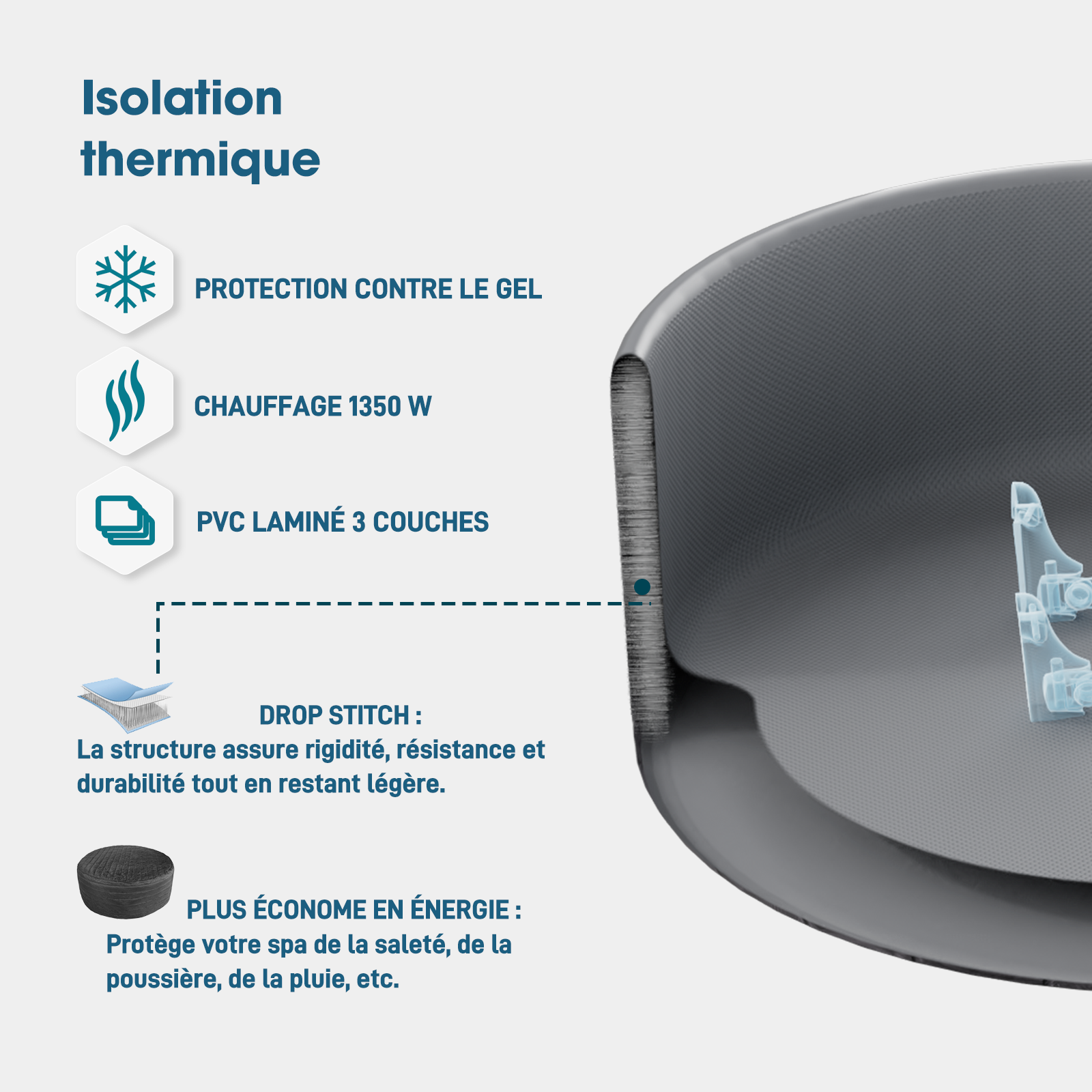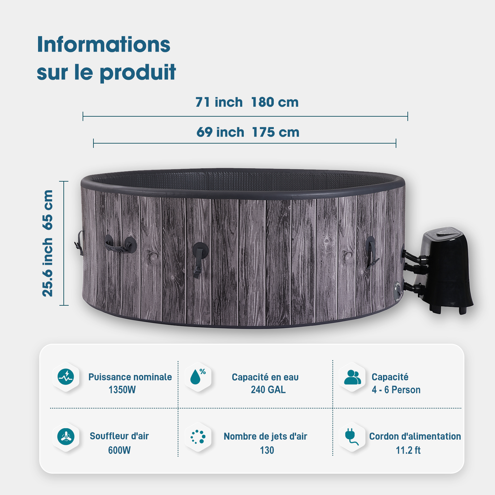 Relxtime 4-6 Person Round Inflatable Hot Tub 130 Massaging Air Bubbles Grey Laminated Vogue Spa - LSHS001-FR