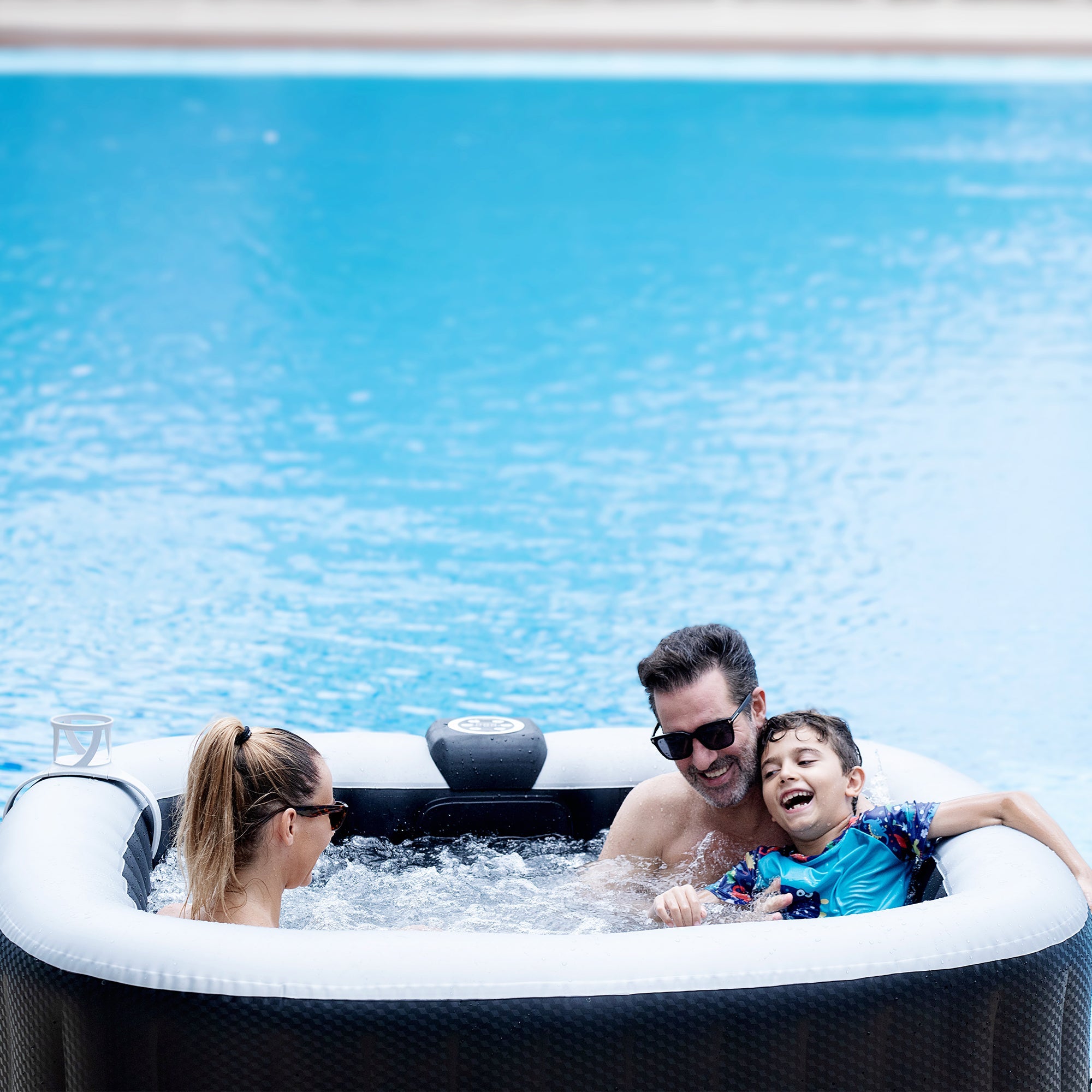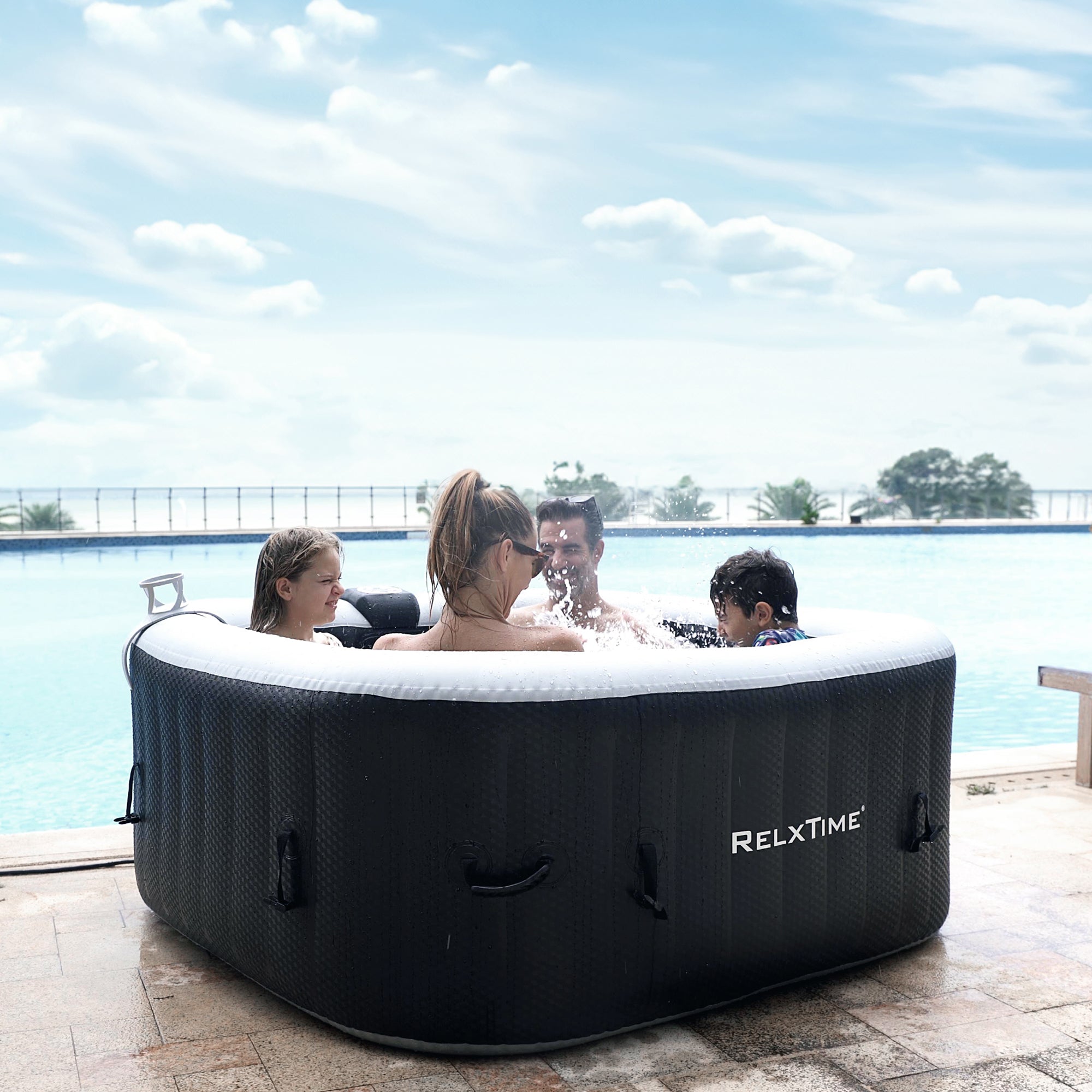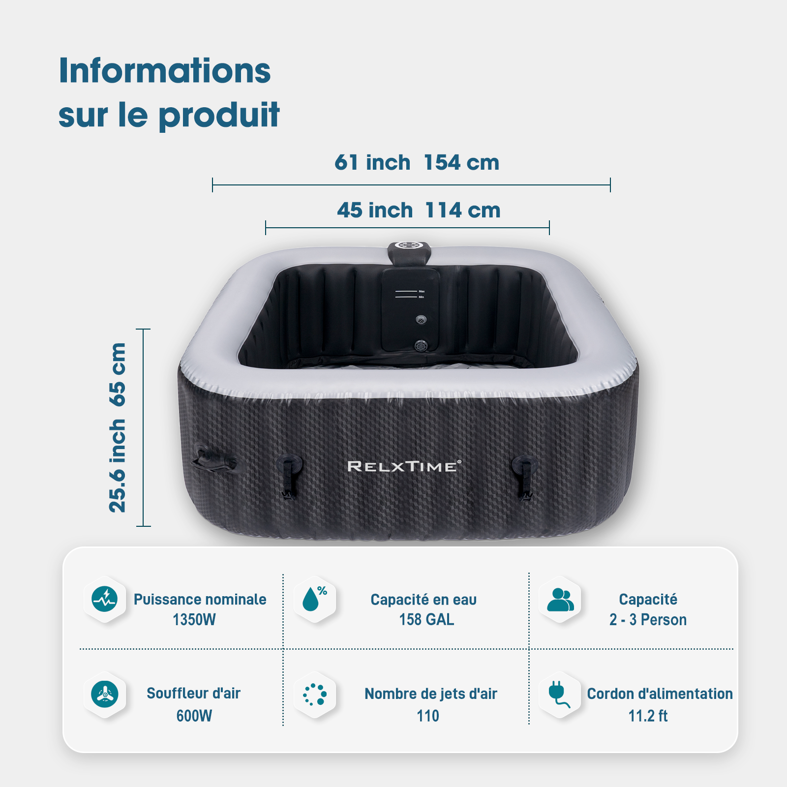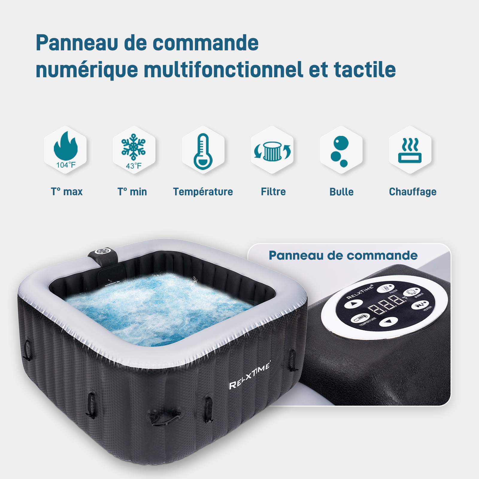 Spa gonflable carré Relxtime 2 à 4 personnes, 120 jets massants, revêtement noir laminé, style classique - HS004-FR